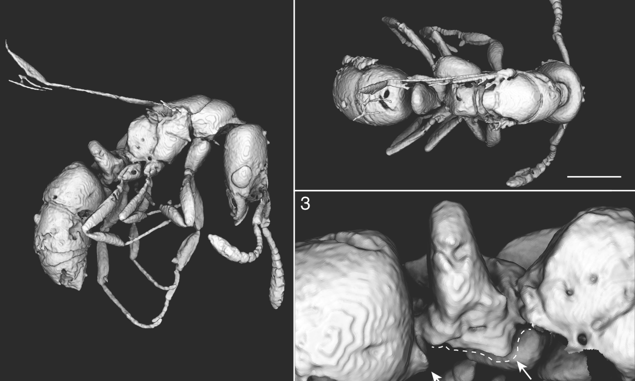 How did scientists study the ant without damaging the amber? They used X-ray scanning to create a three-dimensional model of the ant.