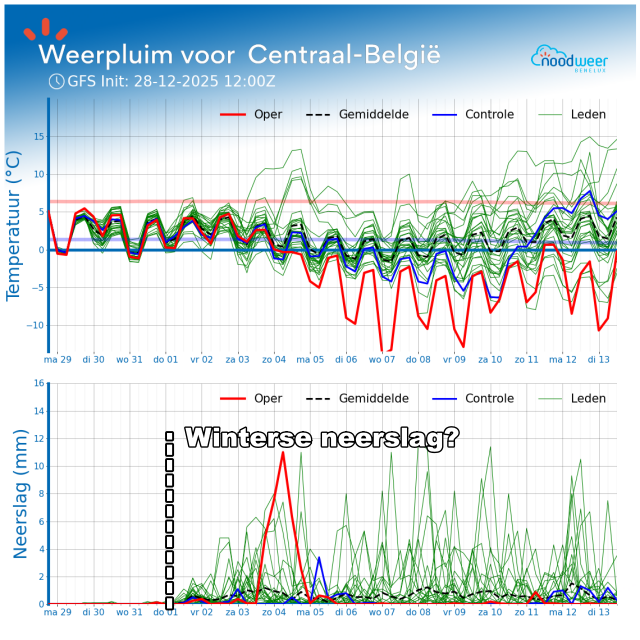 The chance of wintry precipitation increases from the weekend, either through a temperature gradient from the south or through wintry showers arriving from the north. Several models hint at a predominantly cool January with renewed blocking patterns over the Atlantic (due to various teleconnections). This offers hope for winter enthusiasts (or snow lovers) to experience some more winter weather in the Benelux in the coming weeks. However, skating on natural ice remains unlikely for now.