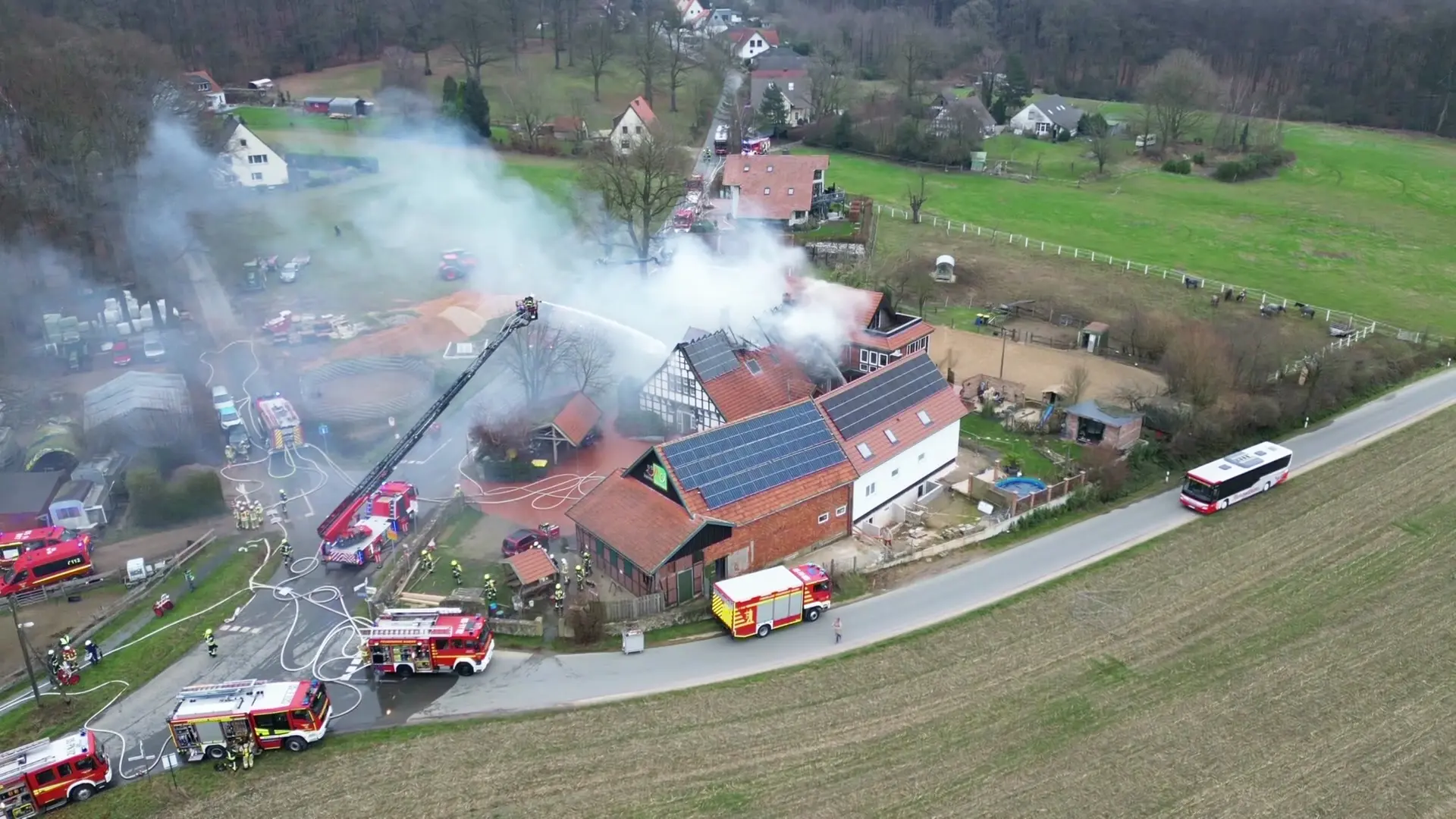 A significant fire broke out on Wednesday at a property located on the grounds of a youth welfare facility in Hagen, within the district of Osnabrück. According to police reports, the blaze was first noticed by passersby who promptly alerted emergency services. Upon arrival, firefighters found the roof of the two-family house already engulfed in flames. Fortunately, all occupants were able to evacuate safely and were unharmed.
