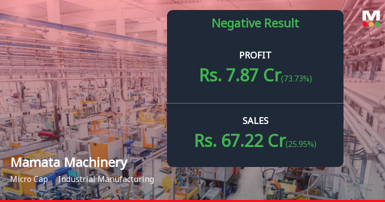 Mamata Machinery reported a net profit of ₹7.87 crore in Q3 FY26, a substantial 73.73% increase from the previous quarter. However, this positive momentum is tempered by a 10.26% year-on-year decline. Net sales also saw a 25.95% sequential jump to ₹67.22 crore, but fell 8.47% compared to the same period last year. This divergence highlights a crucial point: recovery is happening, but from a lower base, and sustaining it will be key.