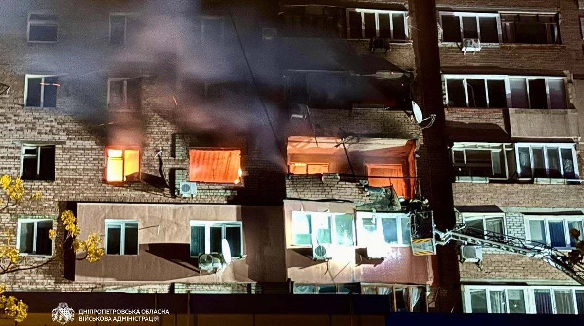 Oleksandr Ganzha, head of the Dnipropetrovsk Regional Military Administration, reported that the attack sparked fires across various districts of the city. A high-rise building was directly hit, causing several apartments to catch fire.