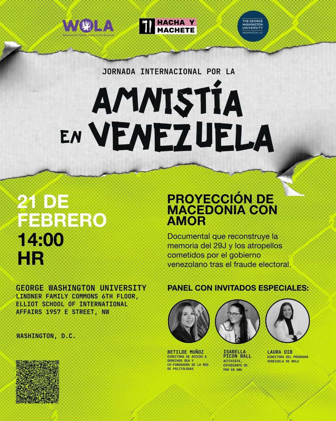 Information about events can be found through WOLA’s website (https://www.wola.org/events/international-day-for-freedom-of-political-prisoners-in-venezuela-film-screening-and-panel-discussion/) and through Hacha y Machete’s social media channels.